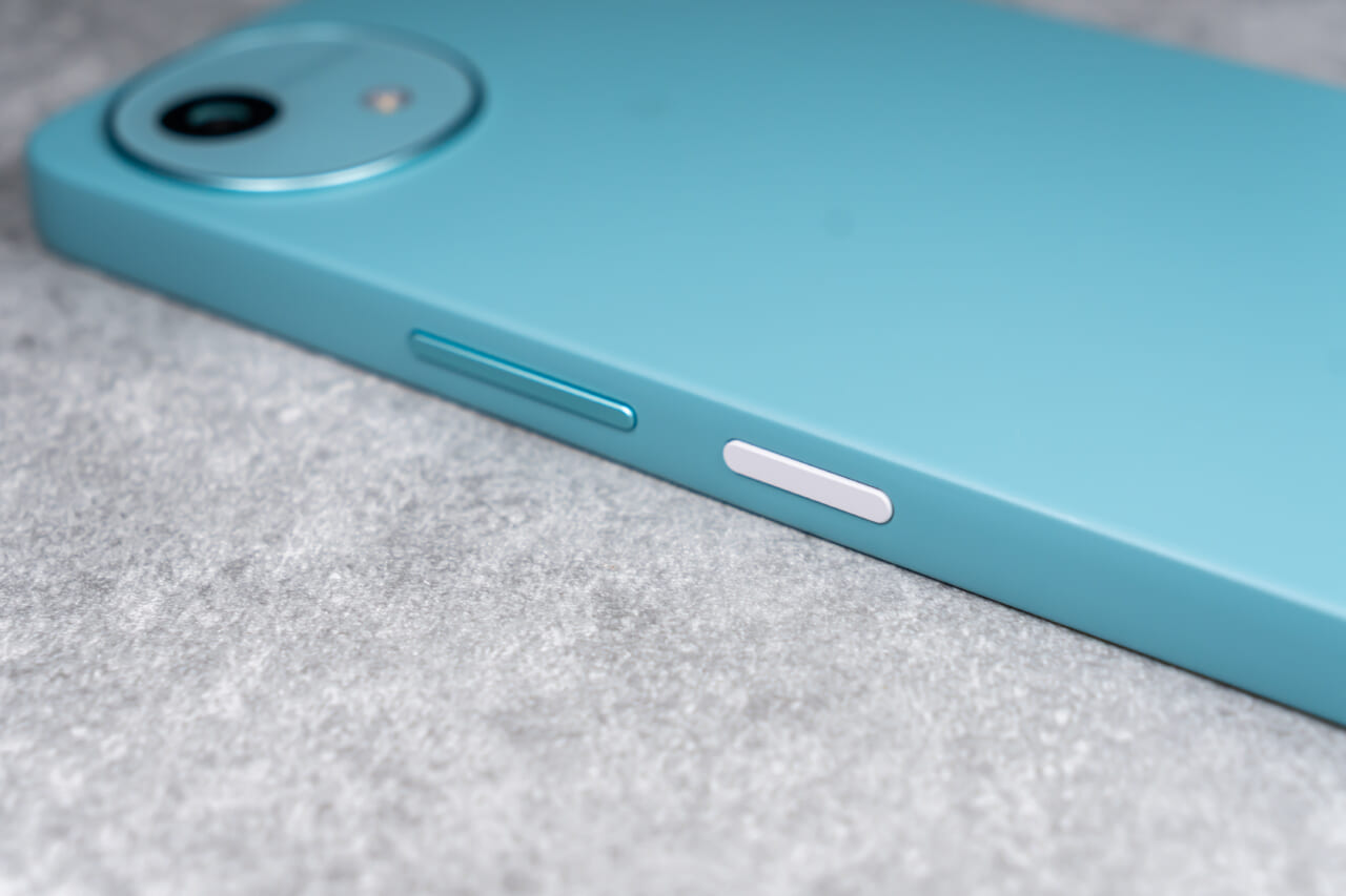 側面の電源ボタンは差し色の白になっています。