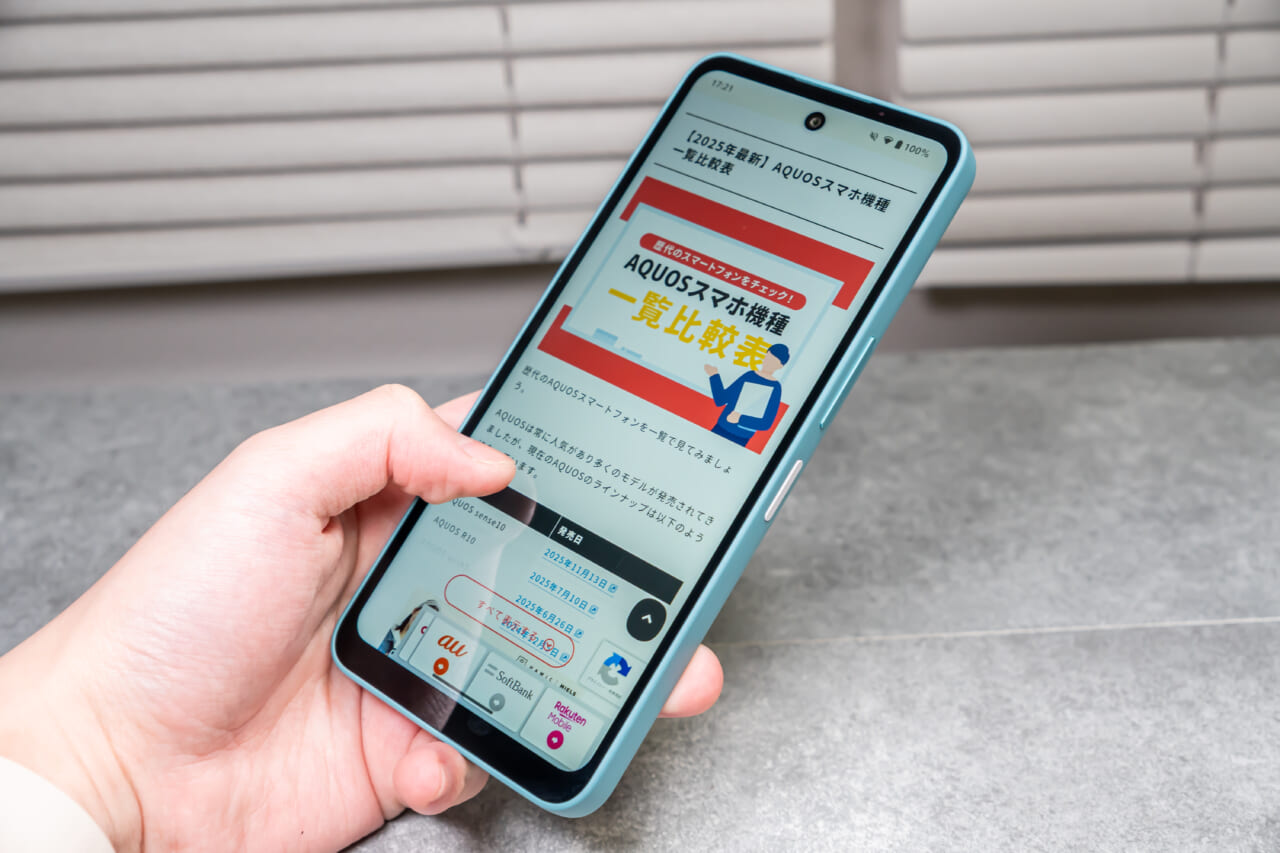 AQUOS wish5の120Hzという仕様はハイエンドモデルと同等のもので、低価格なエントリーモデルで120Hzに対応しているスマホはあまり多くありません。