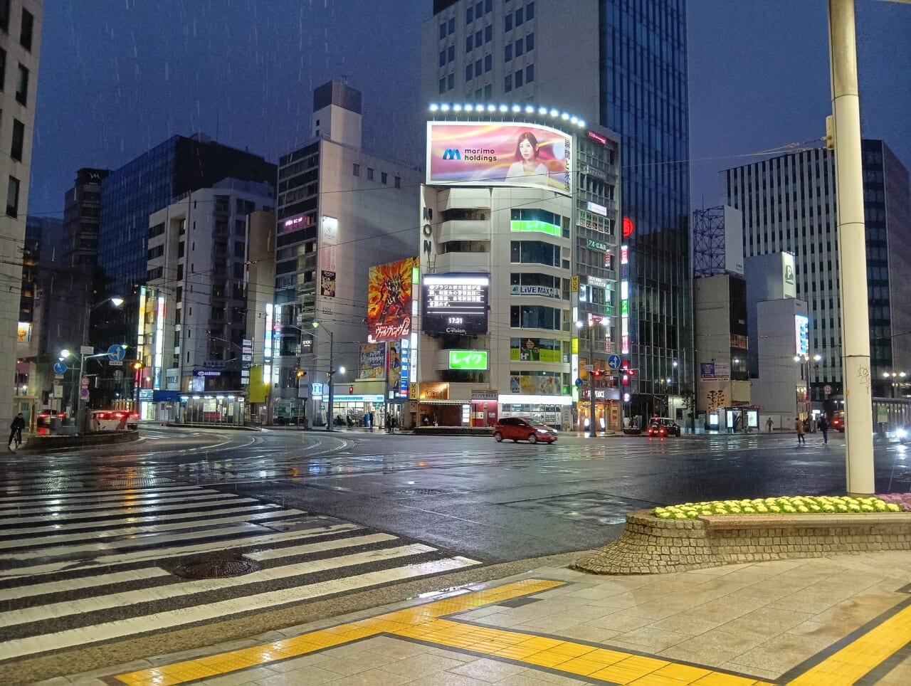 街中の看板などが多い、白飛びしやすいシーンで撮影しました。