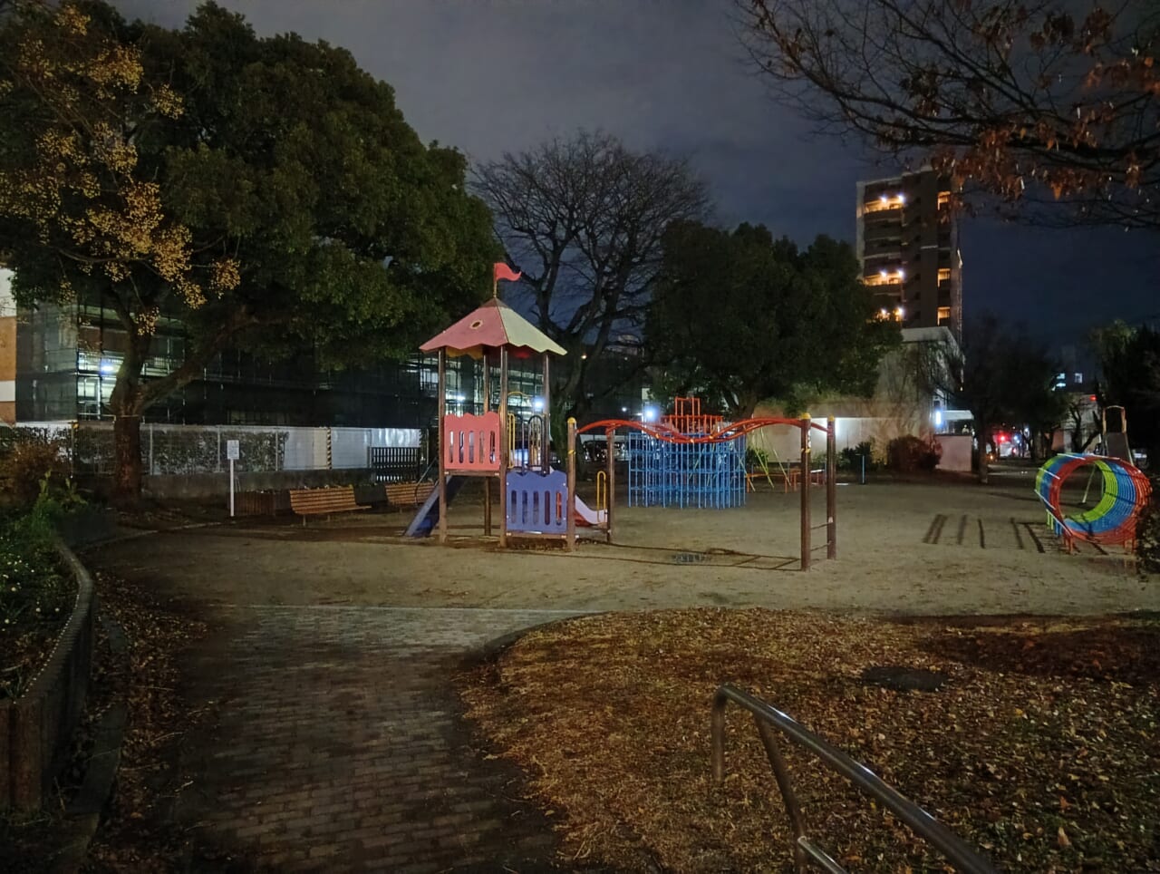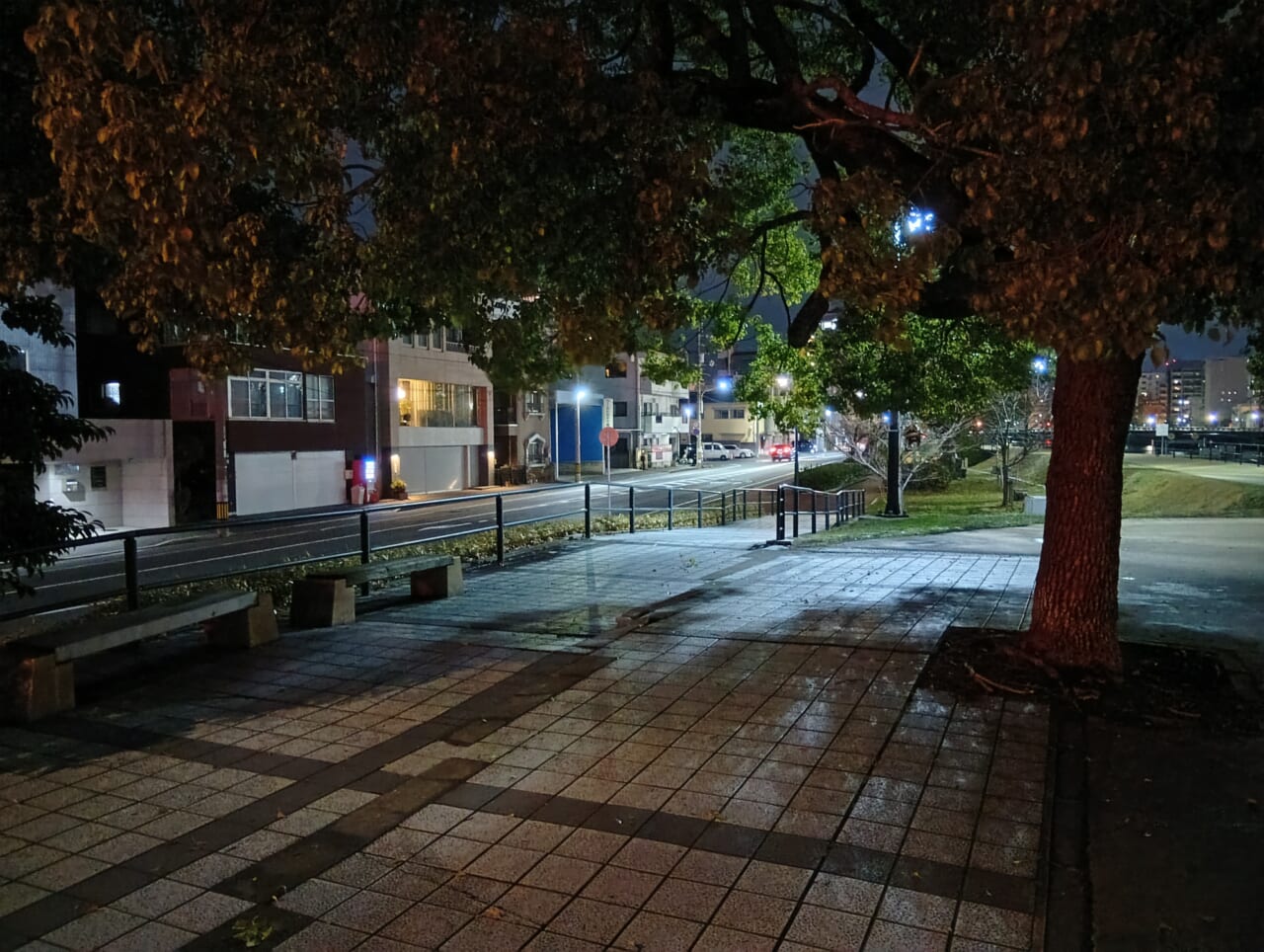 照明が少ない場所で撮影しましたが、しっかり明るく撮影できており、木々の様子なども認識できます。